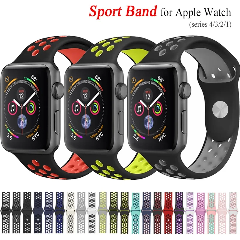 Elastic breathable silicone sport band for apple watch with 42 mm 38 mm 44 mm 40 mm wrist band for iwatch series 4321 universal