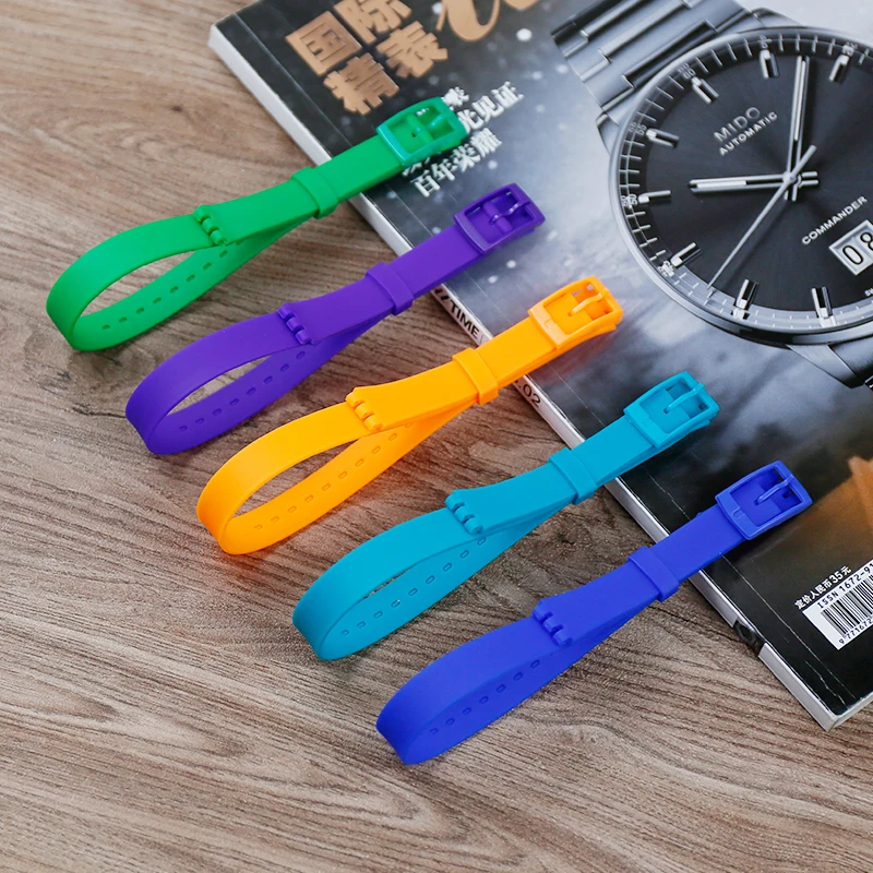 Best Men's and Girls' Silicone Strap 12mm Buckle Watch Accessories for Swatch strap LP131 Wrist Series Multicolor Waterproof Strap.