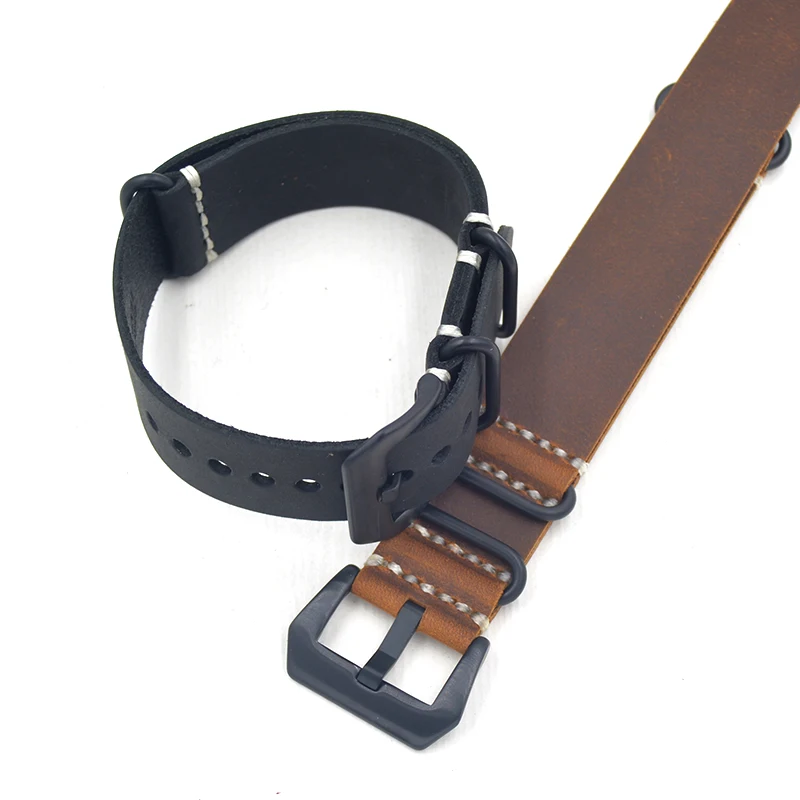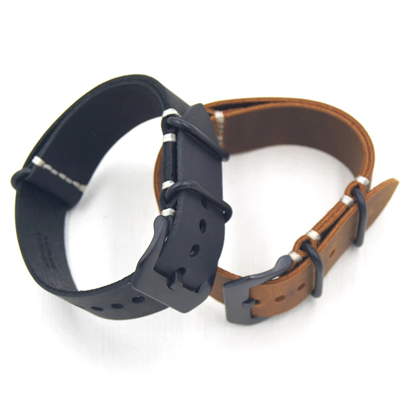 2020 Retro 20 22 24 26mm for NATO ZULU Crazy Horse Leather Strap, G10 Style Leather Strap, Black Brown Watchband For Brand strap