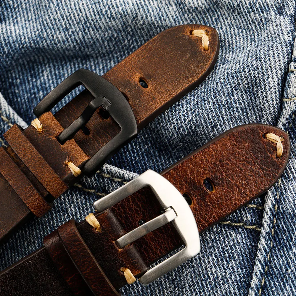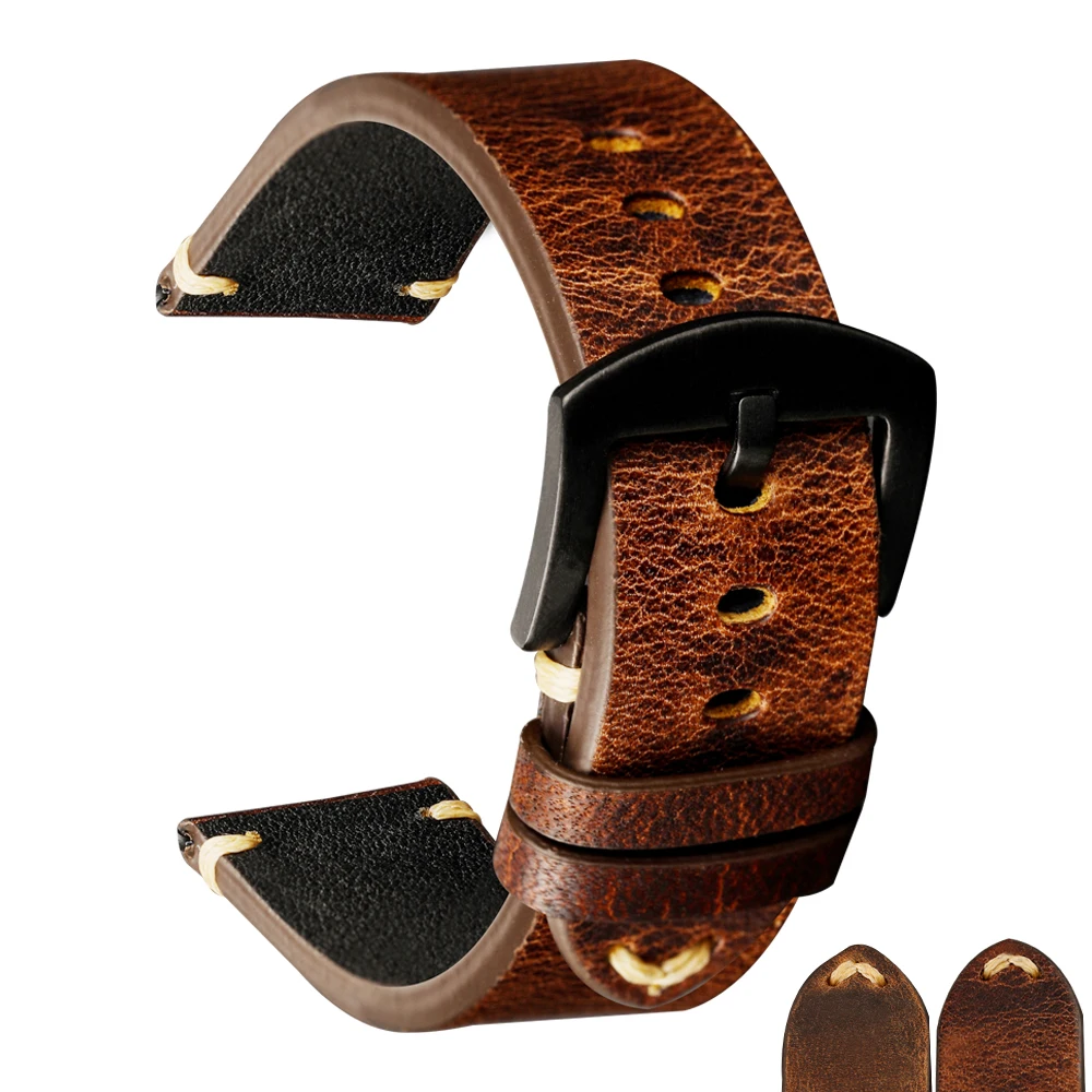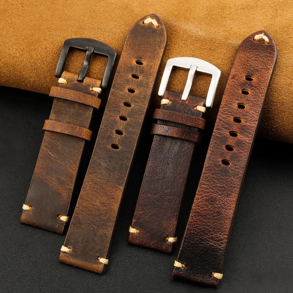 Best Deal of Adaptation Mechanical Wrist Watch Vintage Italian Cowhide Watch Bracelet 20 22MM Men'S Wear Genuine Leather Watch Bracelet.