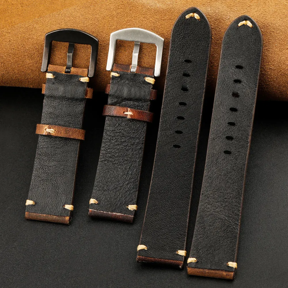 Adaptation Mechanical Wrist Watch Vintage Italian Cowhide Watch Bracelet 20 22MM Men'S Wear Genuine Leather Watch Bracelet