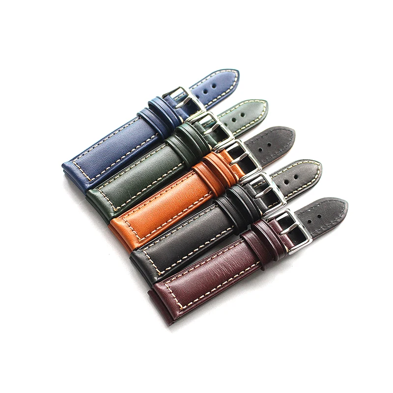 Handmade France Soft Cow Leather Watch Strap 20 22MM Men's Women's Casual Style Leather Watch Strap