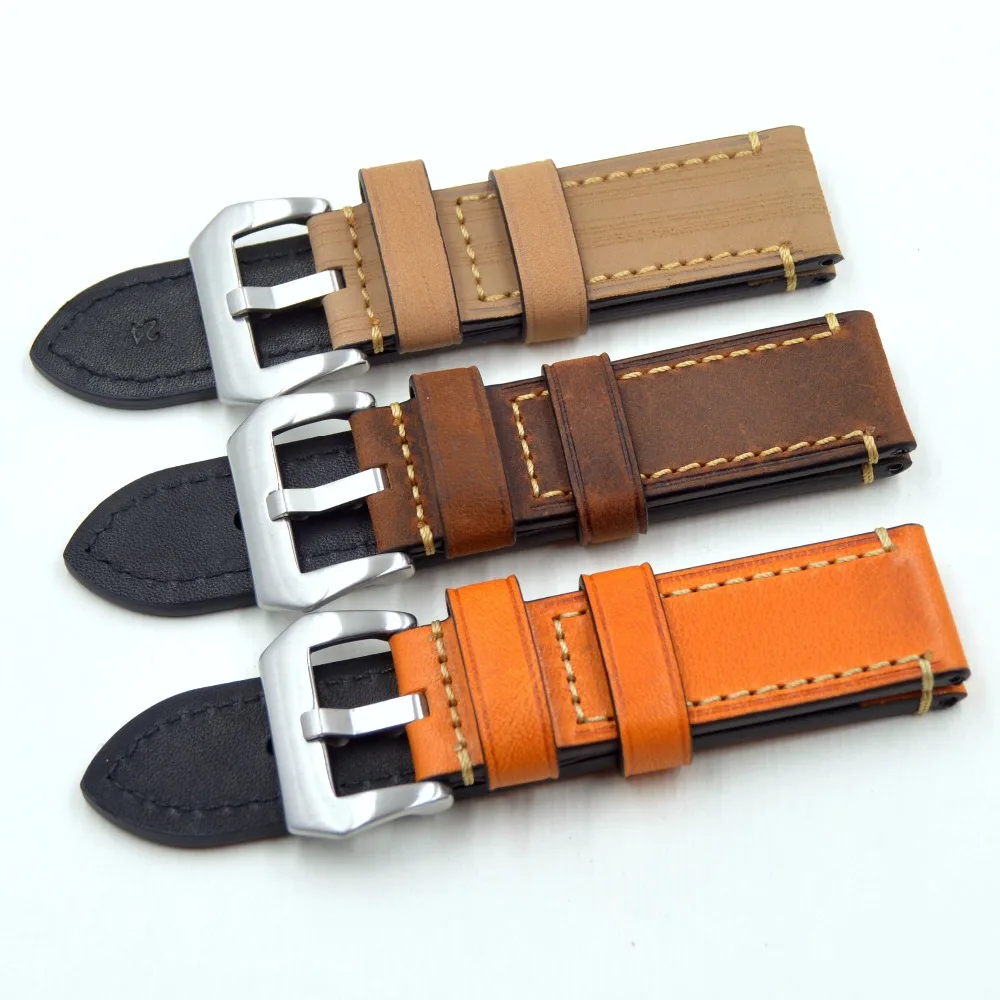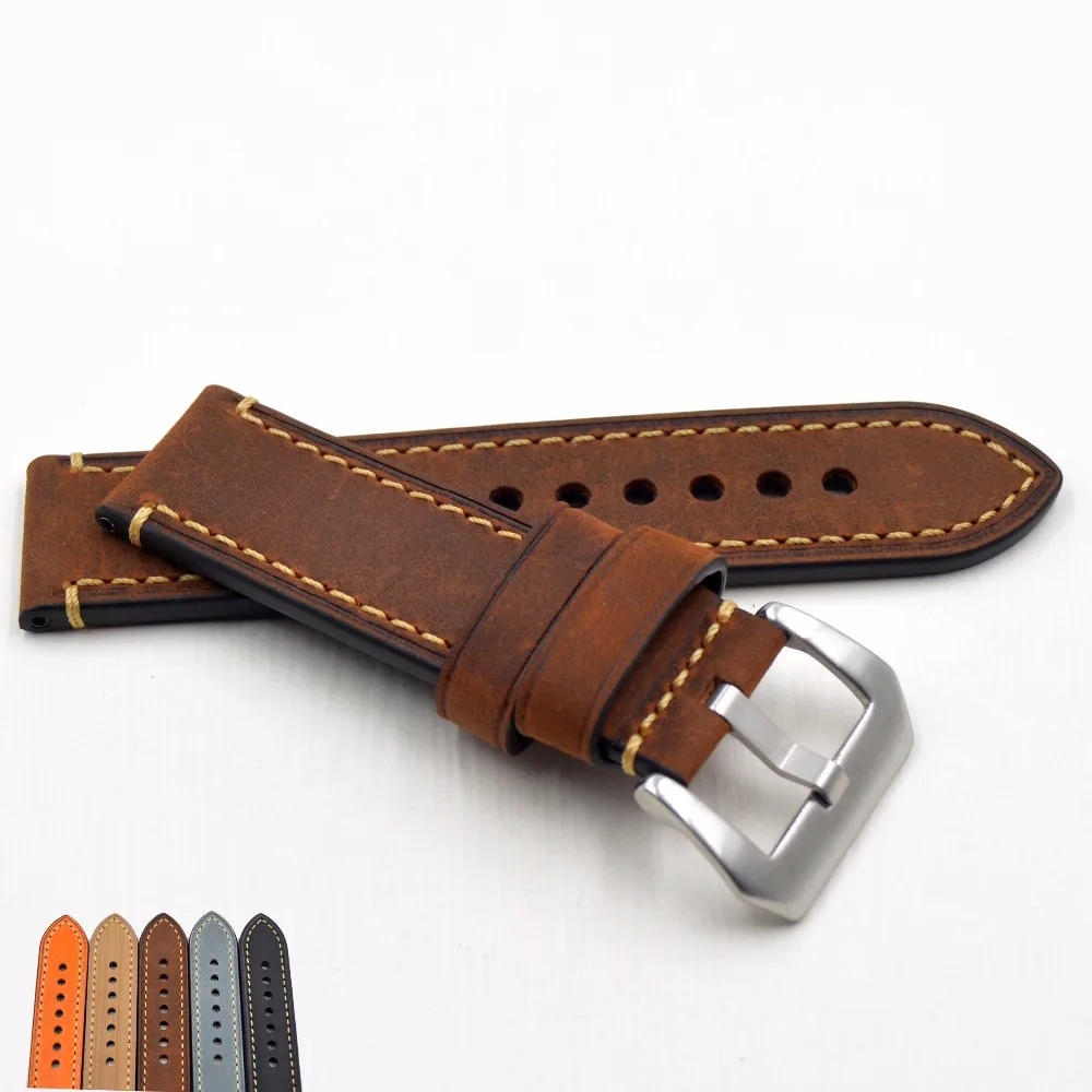 2020 New Luxury Watch strap 20mm 22 24 26mm Man Handmade Leather Wrist Watch Band Straps Belt for Omega fossil PAM 111 Big watch