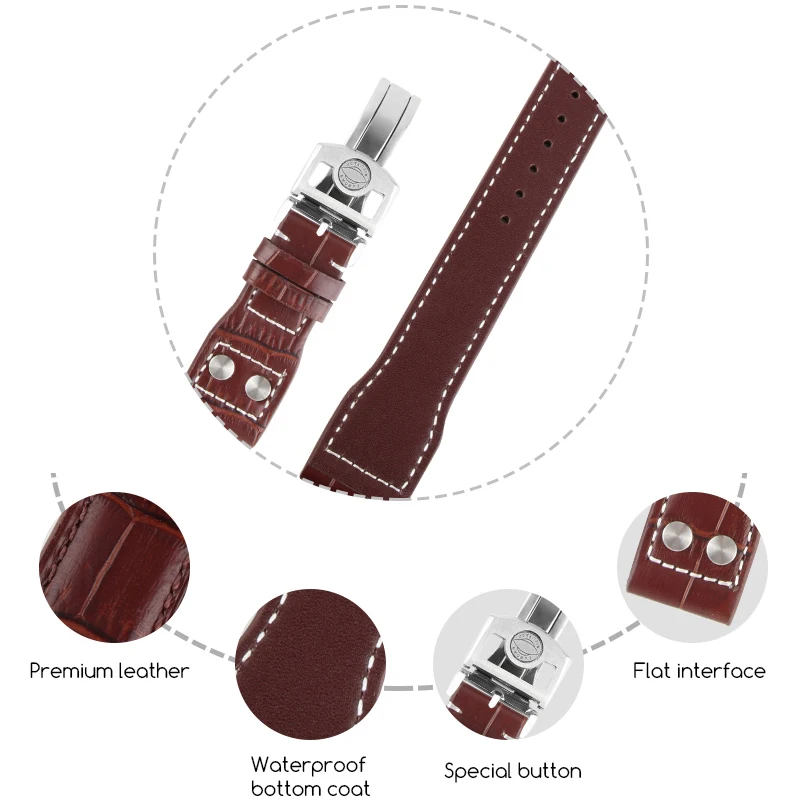 22mm Genuine Calf Leather WatchBand for IWC Pilot Watches Wrist Steel Strap Watchband Bracelet Man Fashion Wrist with Tools