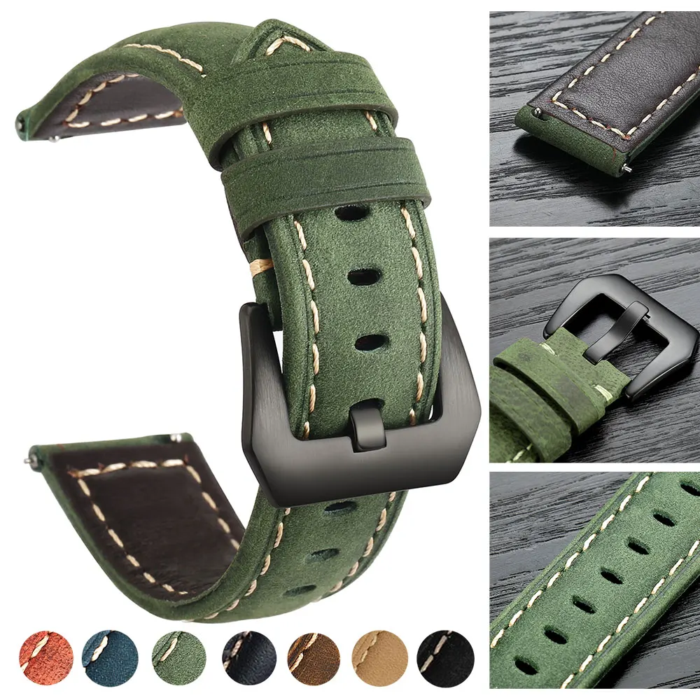 20mm 22mm Leather Watch Band For Amazfit Huawei Samsung Galaxy Watch 46mm 42mm Gear S3 Strap Replacement Straps