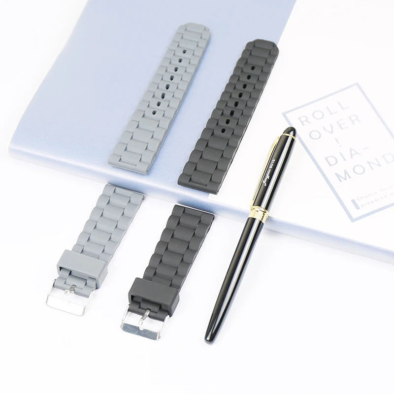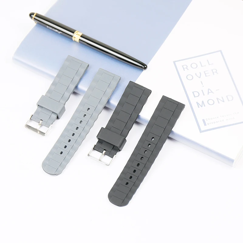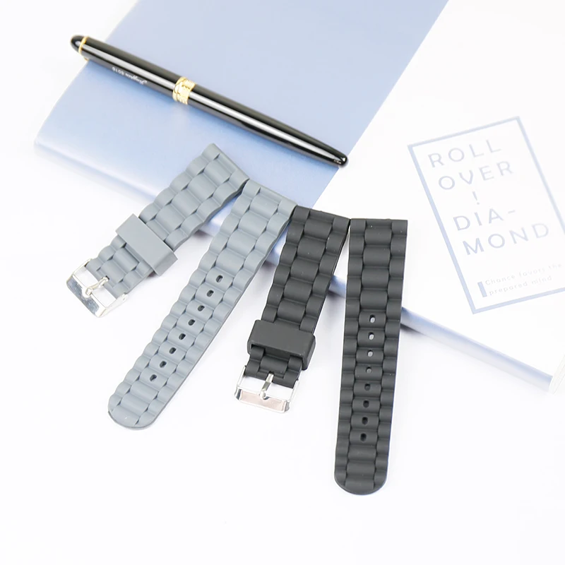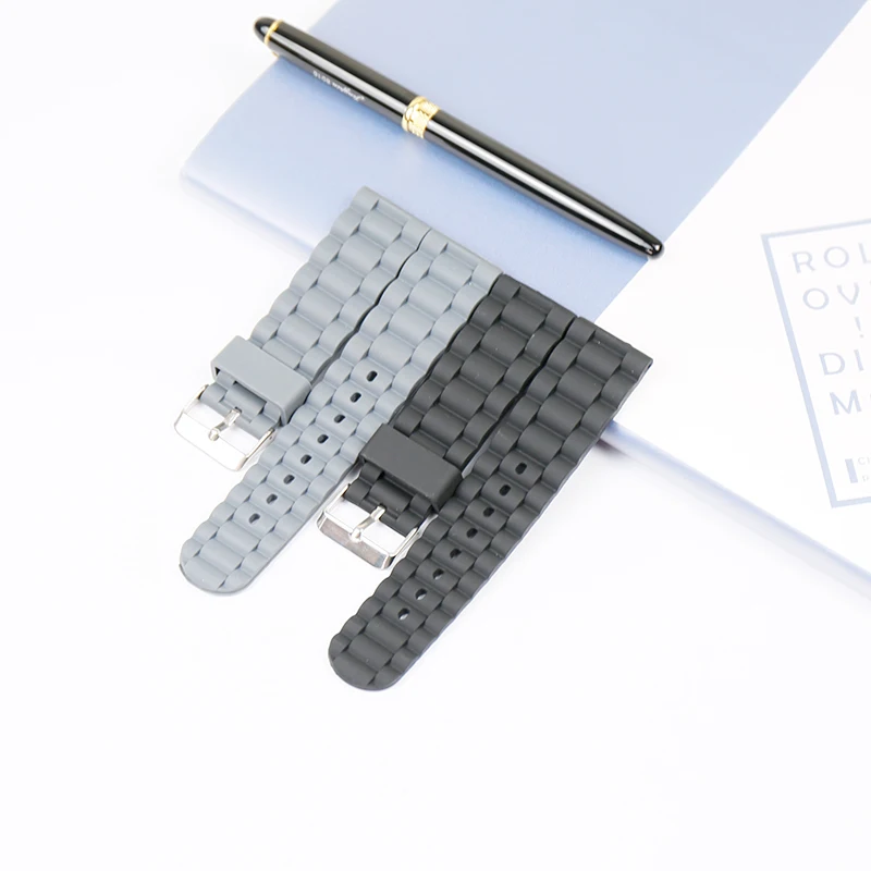 High quality silicone strap men's hands Table accessories pin buckle 24mm outdoor sports waterproof rubber strap women band