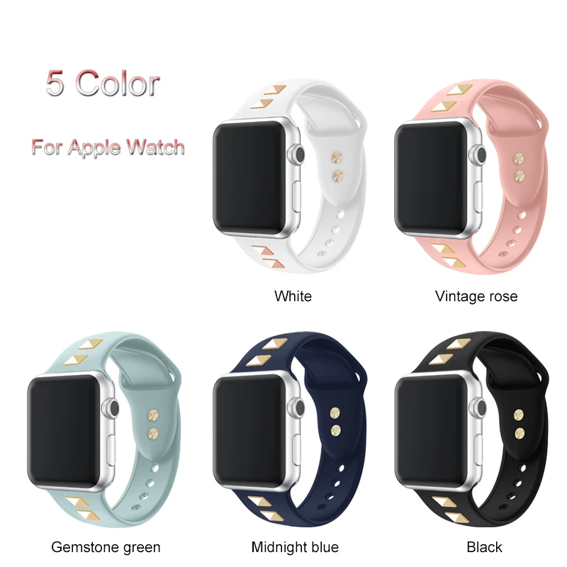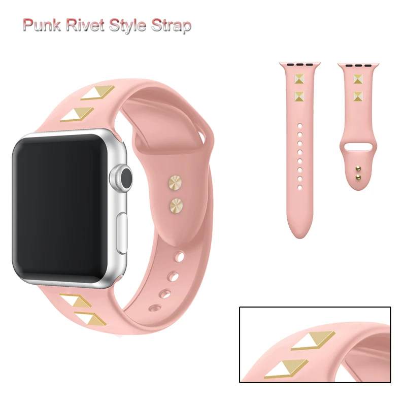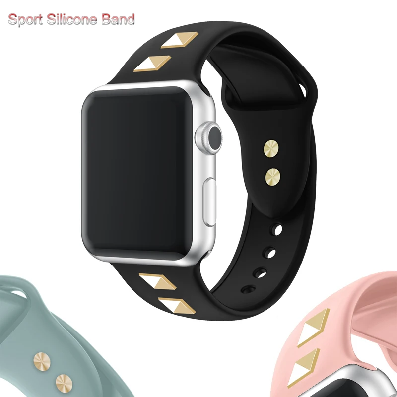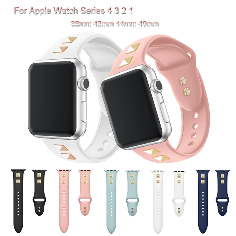 New Design Luxury Rivet Style Watchband strap for Apple Watch Band Series4 3 2 1 Bracelet Men/Women Silicone Strap 40/44/38/42mm