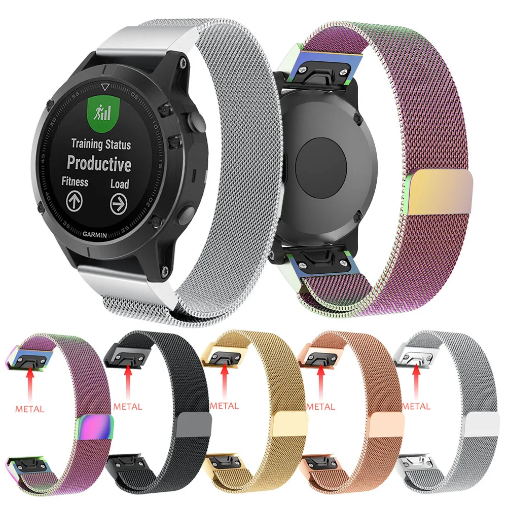 20mm 22mm 26mm Quick Fit Metal Stainless Steel Milanese Loop Wrist band Strap for Garmin Fenix 5 5S 5X 3 3HR S60 D2 Mk1 watch