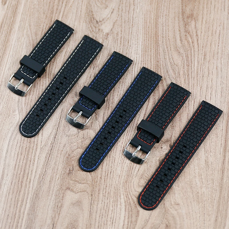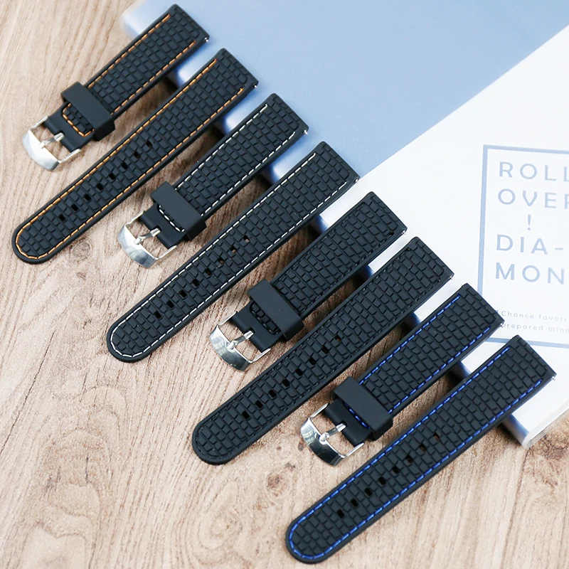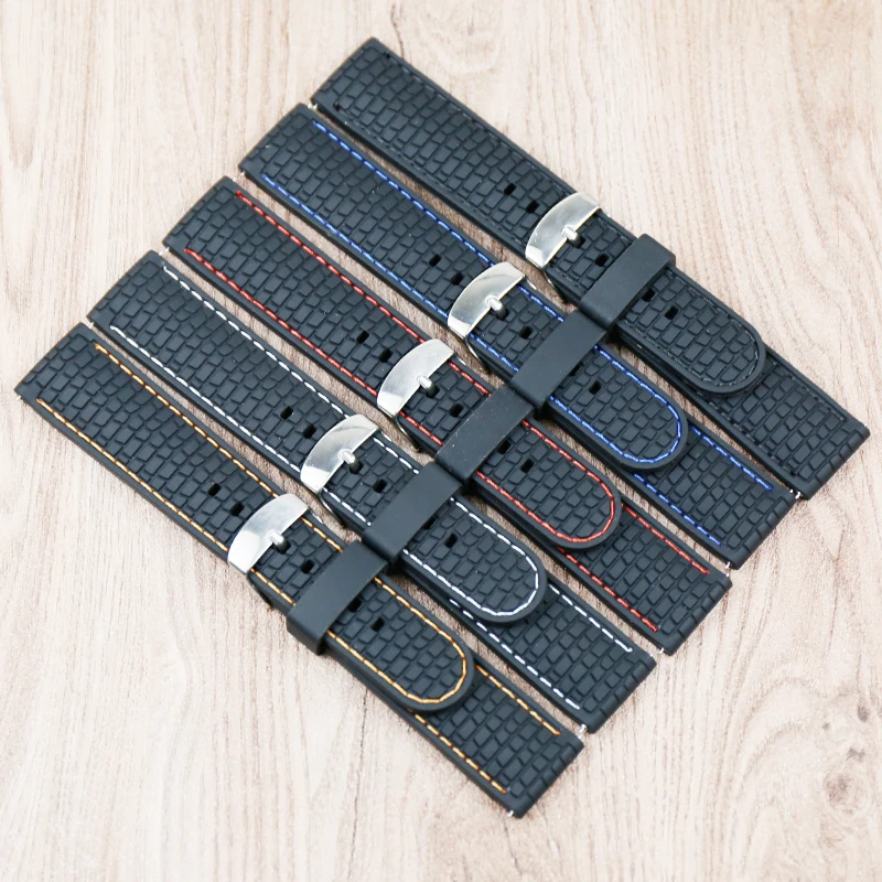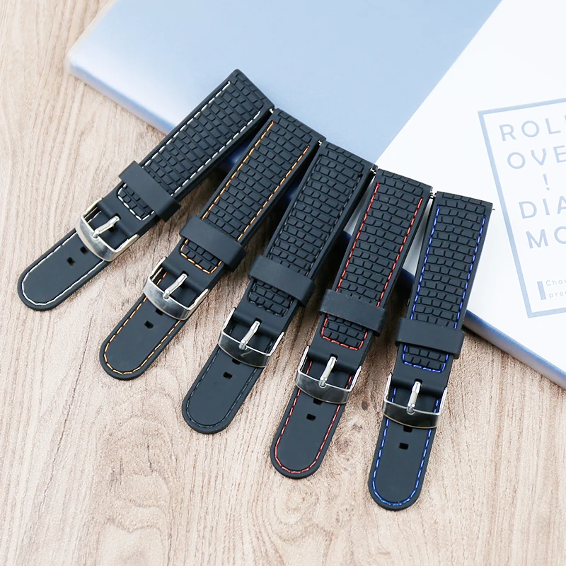 Men's watch silicone strap buckle 22mm watch accessories outdoor sports waterproof sweat-proof suture rubber strap