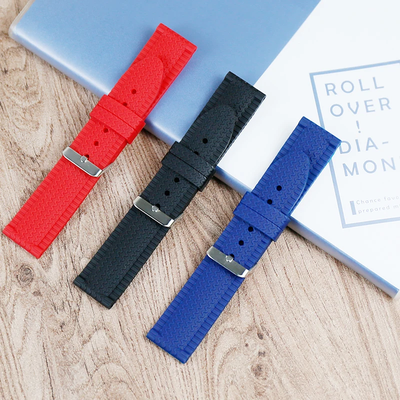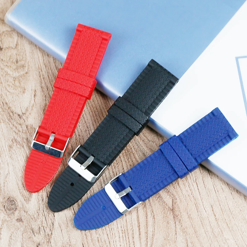 Men's watch accessories silicone strap 24mm flat pin buckle for a variety of business casual ladies sports strap.